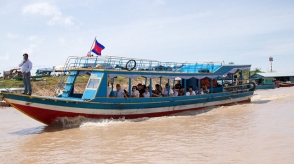 Between July and March ferries run between Phnom Penh and Siem Reap, and vice versa (they usually do not run during the dry season when the water levels are low). Travel is generally best during the wet season when water levels are high. Although the boats are probably not as safe as what you’d find at home, they have started increasing the safety standards, which actually has life jackets for passengers. Most passengers opt for sitting on the top of the boat (so bring sunblock) and watch the countryside go by. The boat goes through some interesting floating villages outside of Siem Reap. Boats leave from both Siem Reap and Phnom Penh at 7:30 a.m. and the trip takes about six hours, covering for a distance of 250km.