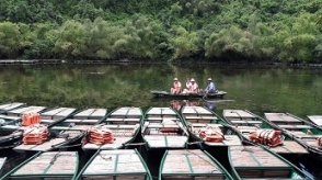 Rowing boat in Trang An is an exprience, Trang An is a popular World Heritage with many little grottoes in the river.